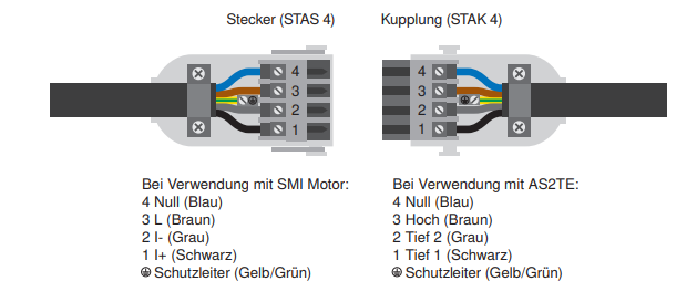| Anschlussart | STAK 4-Stecker (4-polig) vorkonfektioniert |