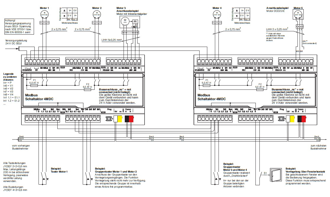 - Anschluss von lokalen Tastern für Einzel- und Gruppenbedienung