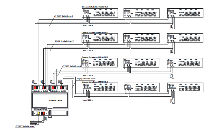 Die Zusatzkomponenten sind Ergänzungsprodukte zur Erweiterung und Optimierung des Omnexo Systems. Hardware zur Verlängerung der Omnexo Busleitung und zur Realisierung von Stichleitungen.