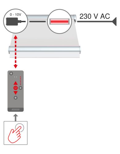 Der WMS Dimmer 0-10 V schaltet und dimmt die WAREMA Design Heizstrahler. Der WMS Dimmer empfängt Schaltbefehle von WMS Sendern wie dem WAREMA WMS Handsender basic #2031128 oder der WAREMA WMS Handsender comfort #2086959. Die WMS Empfänger sind clever, sie steuern Sonnenschutz oder Beleuchtung und leiten von Sender und Sensoren erhaltene Befehle oder Wetterdaten an andere Empfänger weiter. Einstellungen und Parameter werden direkt im Empfänger abgespeichert. Das WMS Funksystem arbeitet bidirektional, das heißt, alle WMS Komponenten, egal ob WMS Zwischenstecker oder WMS Handsender leiten die Befehle weiter und Sie erhalten am Sender eine Bestätigung das ein Befehl empfangen und ausgeführt wird. Produktmerkmale
