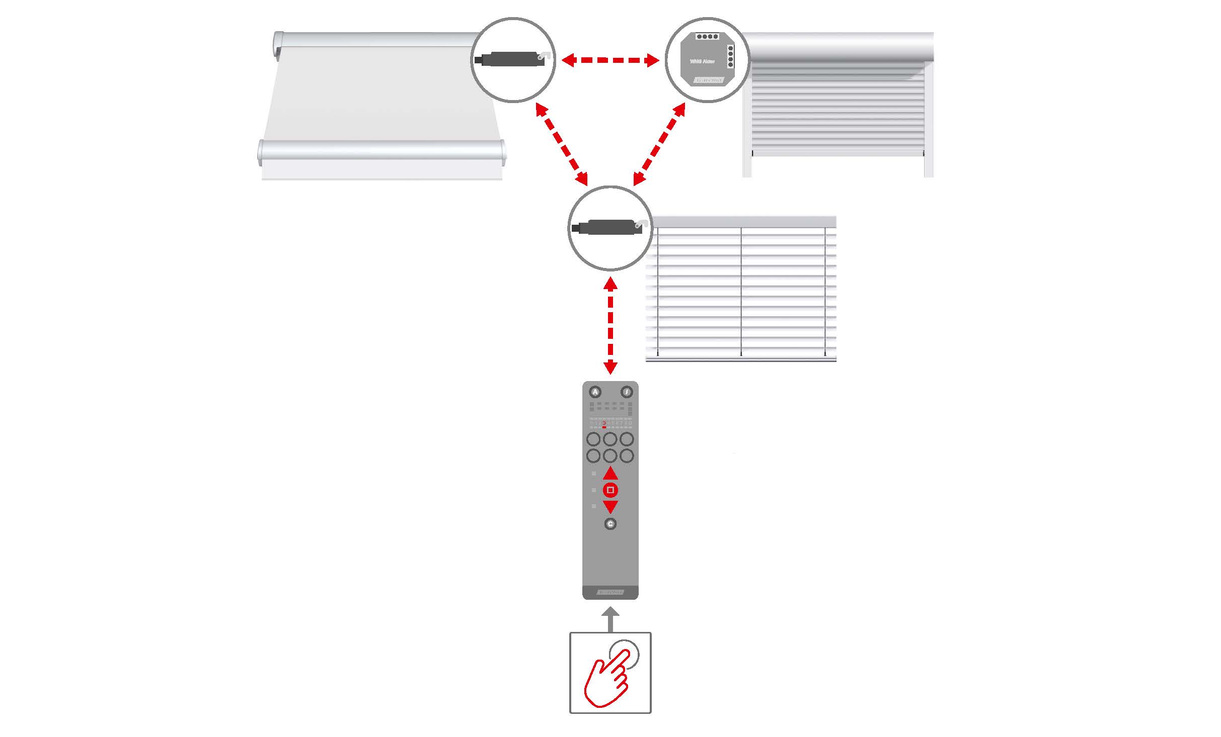 Über den WMS Handsender comfort können die Komfortautomatiken ein- und ausgeschaltet werden. Die im Empfänger gespeicherten Parameter der Automatikfunktionen können angezeigt und verändert werden. Der WMS Handsender comfort zeigt bei der nächsten Bedienung eines Produkts an, ob dieses in der Zwischenzeit durch eine Automatik bedient wurde. Verhindert eine Automatikfunktion das Bedienen eines Produkts (z.B. Windalarm), wird dies ebenfalls am WMS Handsender comfort angezeigt.