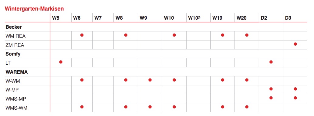 Beim WAREMA Markisenmotor W-WM handelt es sich um einen 230V Ersatzmotor bzw. Austauschmotor für folgende WAREMA Wintergarten-Markisen: