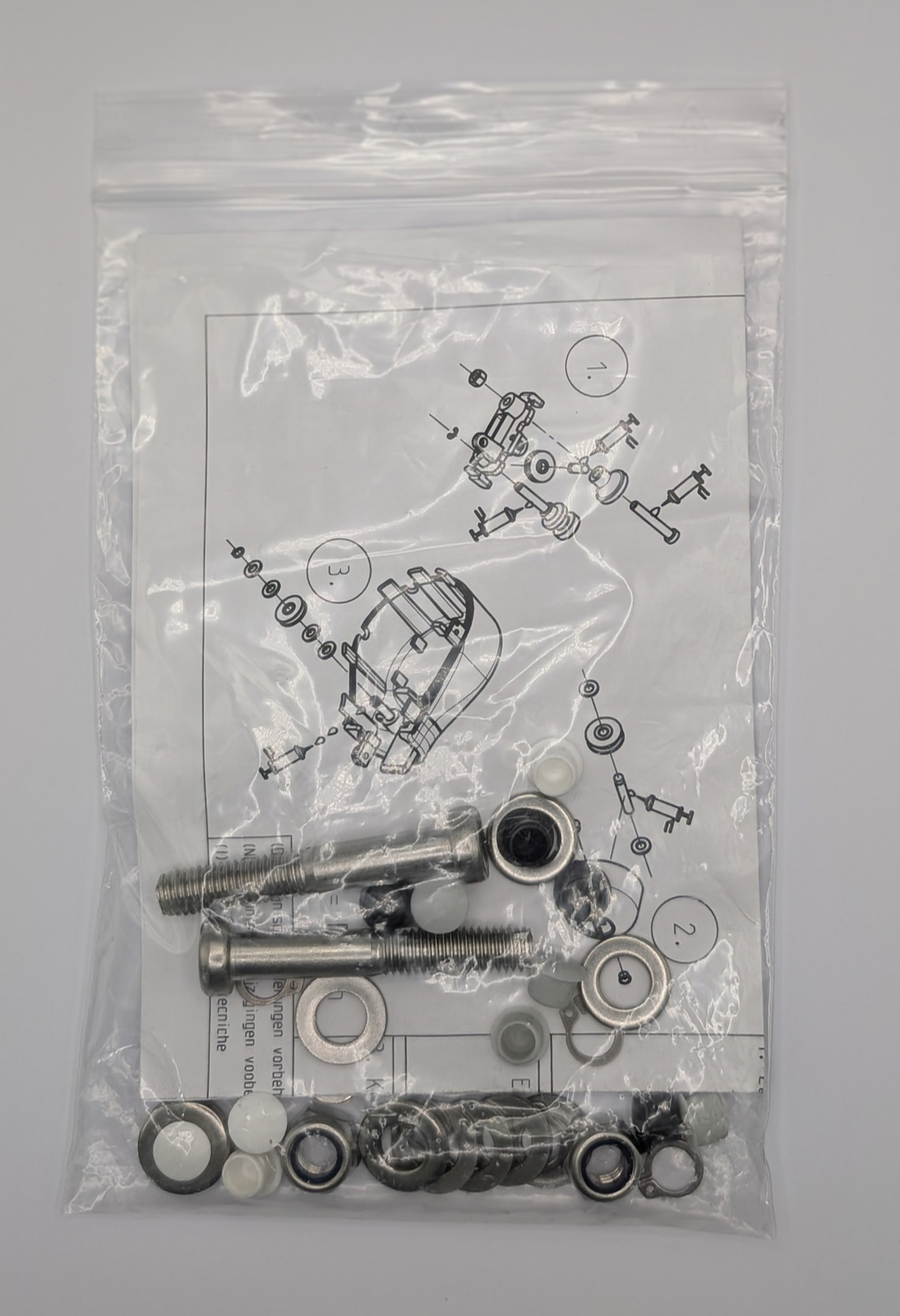 - sowie 10 Unterlegscheiben, Sicherungsringe, Abdeckstopfen und Fett